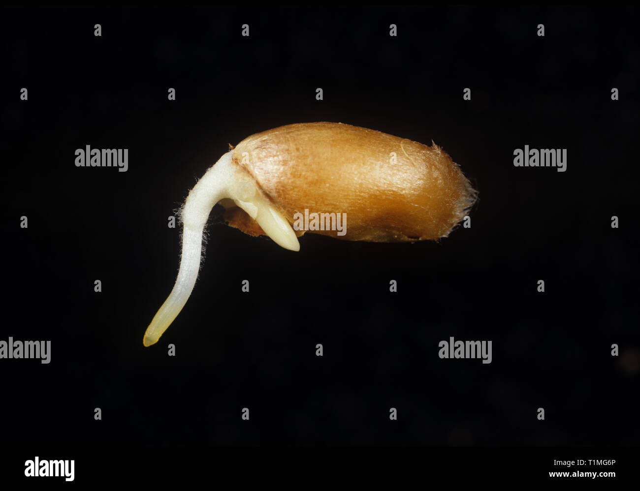 Germinating Wheat Seed With Root Radicle Coleorhiza And Root Hairs And Coleoptile Just Emerging Stock Photo Alamy